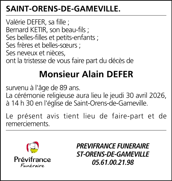 Décédé à Toulouse (31300, France) le samedi 25 avril 2026 à l'âge de 89 ans