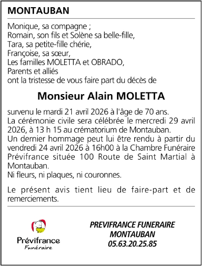 Crématorium Prévifrance Funéraire de Montauban le mercredi 29 avril à 14 heures