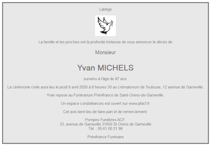 Décédé à Labège (31670, France) le mercredi 1 avril 2026 à l'âge de 87 ans