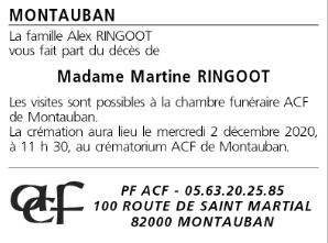 Décédée à Montauban (82000, France) le vendredi 27 novembre 2020 à l'âge de 68 ans