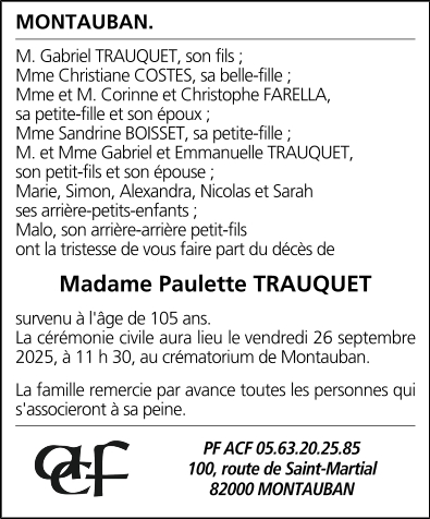 Avis de décès Mme TRAUQUET