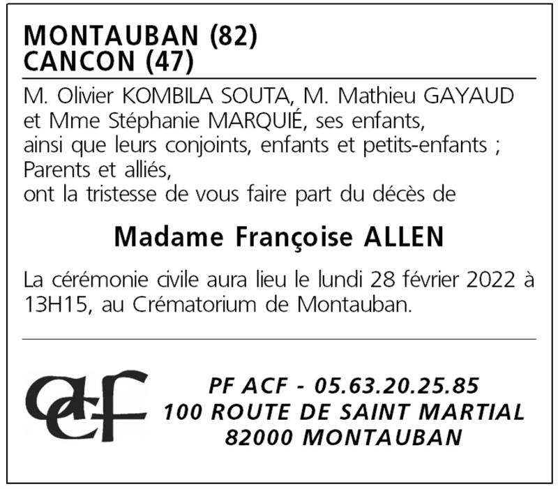 Décédée à Montauban (82000, France) le mardi 22 février 2022 à l'âge de 77 ans