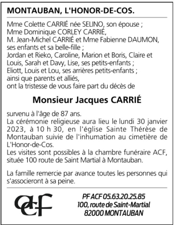 Décédé à Montauban (82000, France) le mercredi 25 janvier 2023 à l'âge de 87 ans