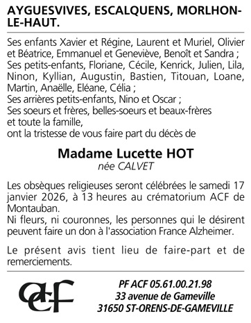 Madame Lucette HOT née CALVET