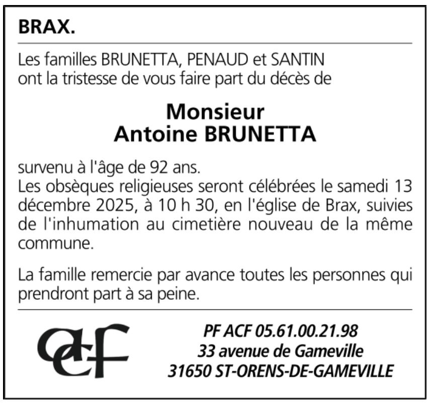 Décédé à Gimont (32200, France) le mercredi 3 décembre 2025 à l'âge de 92 ans