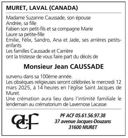 Décédé à Rieumes (31370, France) le mercredi 5 mars 2025 à l'âge de 99 ans