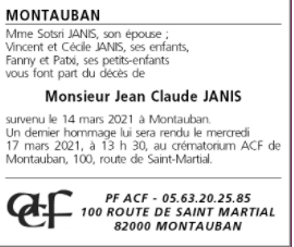 Décédé à Montauban (82000, France) le dimanche 14 mars 2021 à l'âge de 79 ans