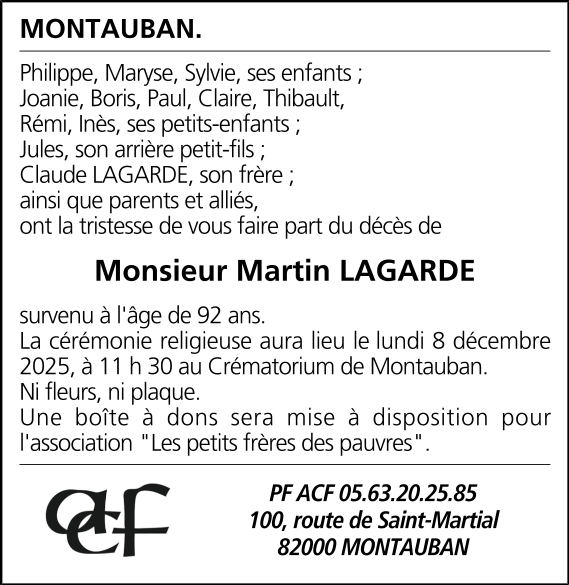 Avis de décès M. LAGARDE Martin
