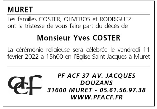 Décédé à Muret (31600, France) le mercredi 9 février 2022 à l'âge de 97 ans