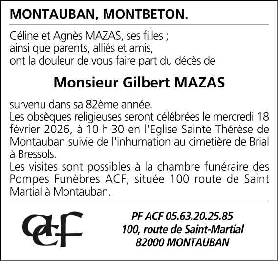 Décédé à Montauban (82000, France) le jeudi 12 février 2026 à l'âge de 81 ans