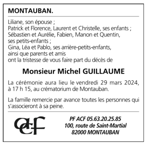 Avis de décès Monsieur Michel GUILLAUME